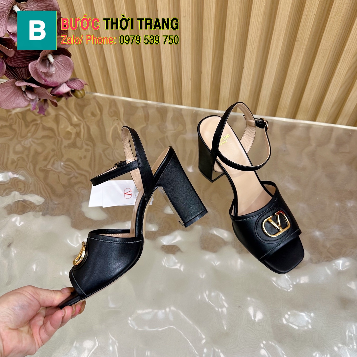 Sandal cao gót VALENTINO cao cấp màu đen thanh lịch phong cách cổ điển đế cao 8,5cm