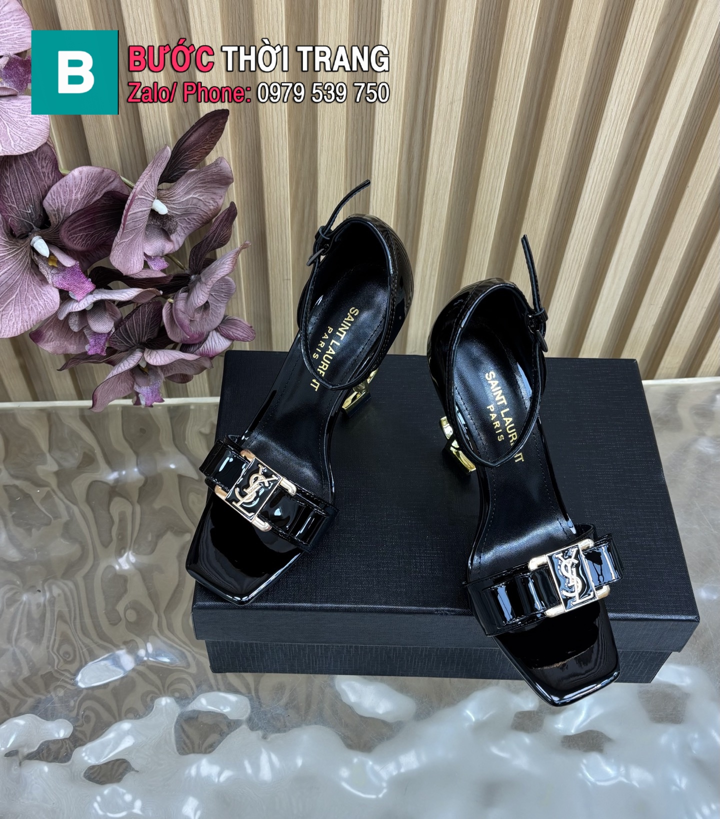 Sandal cao gót YSL màu đen da bóng quai ngang nữ tính đế 11 cm tôn dáng