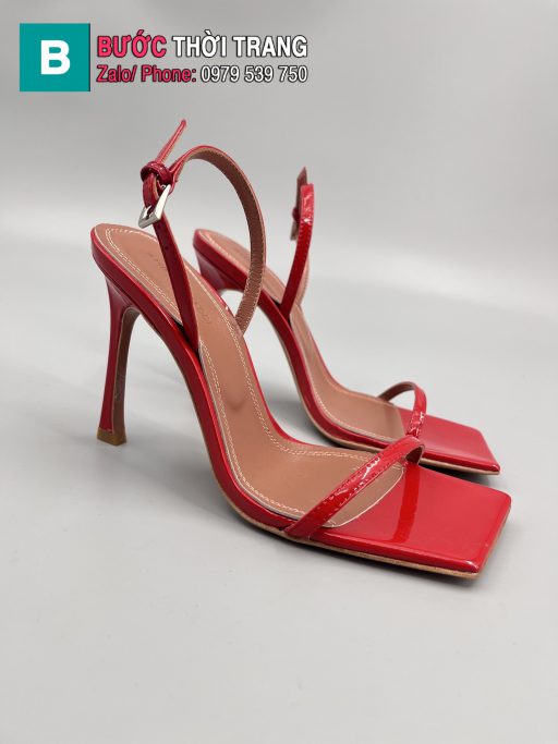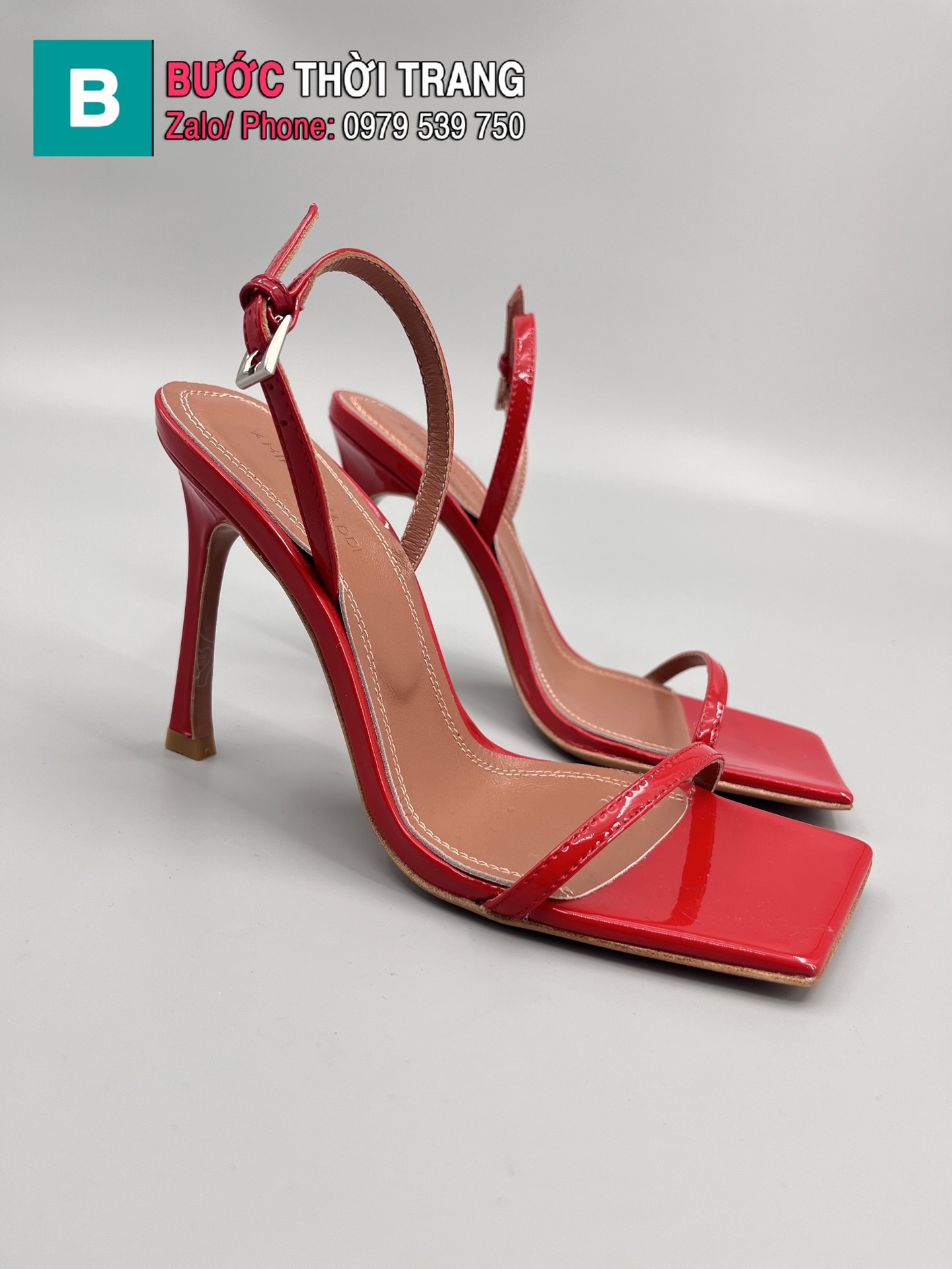 Guốc cao gót Amina Muaddi màu đỏ chất da bóng mũi nhọn cao 9.5cm