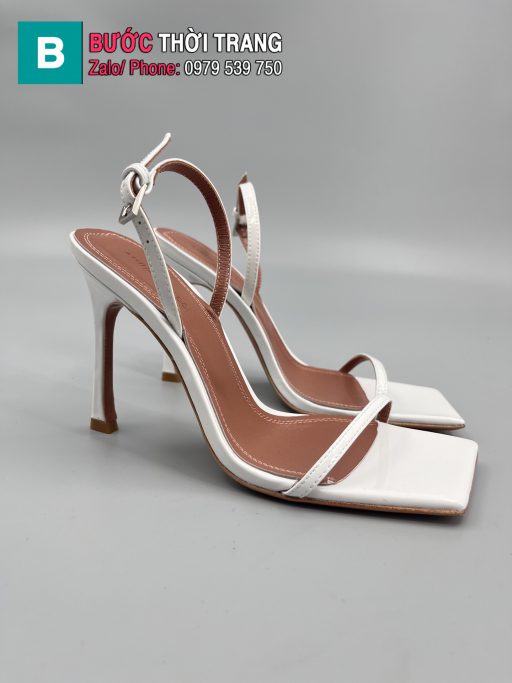 Guốc cao gót Amina Muaddi màu trắng chất da bóng mũi nhọn cao 9.5cm