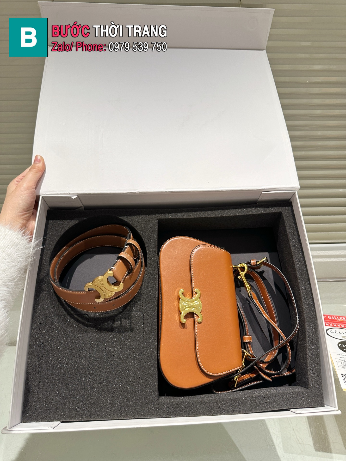 Set túi xách CELINE cao cấp và dây lưng size 22×12 cm da bò mềm mịn sang trọng