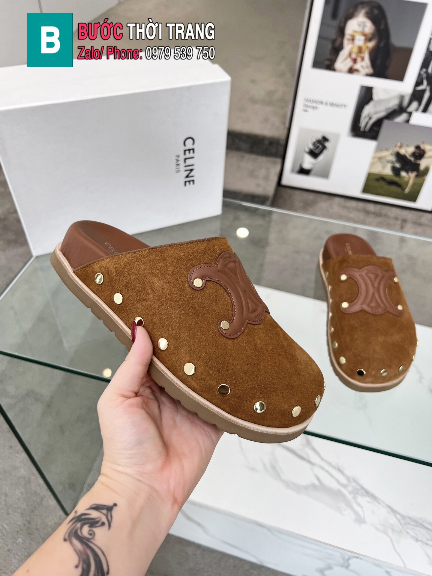 Sục CELINE siêu cấp màu nâu logo nổi bật chế tác từ da bê cao cấp