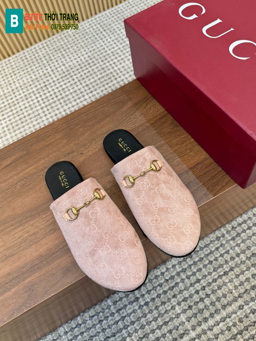 Sục Gucci đế bệt cao cấp màu hồng nude da lộn mềm mịn