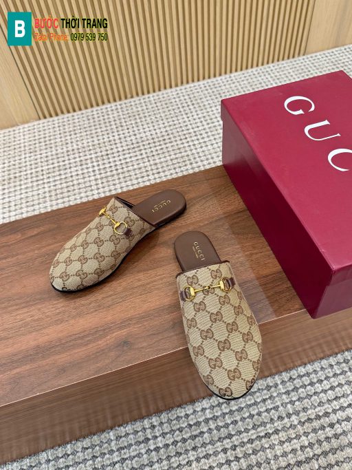 Sục Gucci đế bệt cao cấp màu nâu da canvas sang trọng