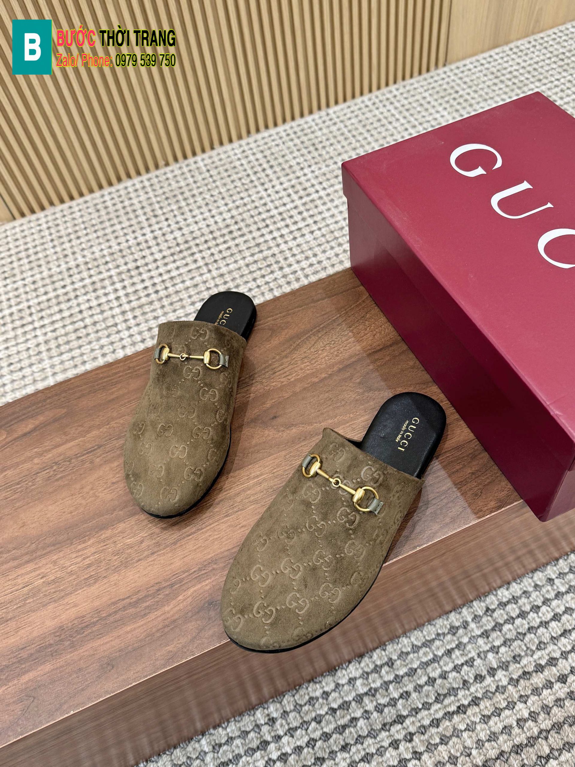 Sục Gucci đế bệt cao cấp màu nâu đậm da lộn mềm êm sang trọng