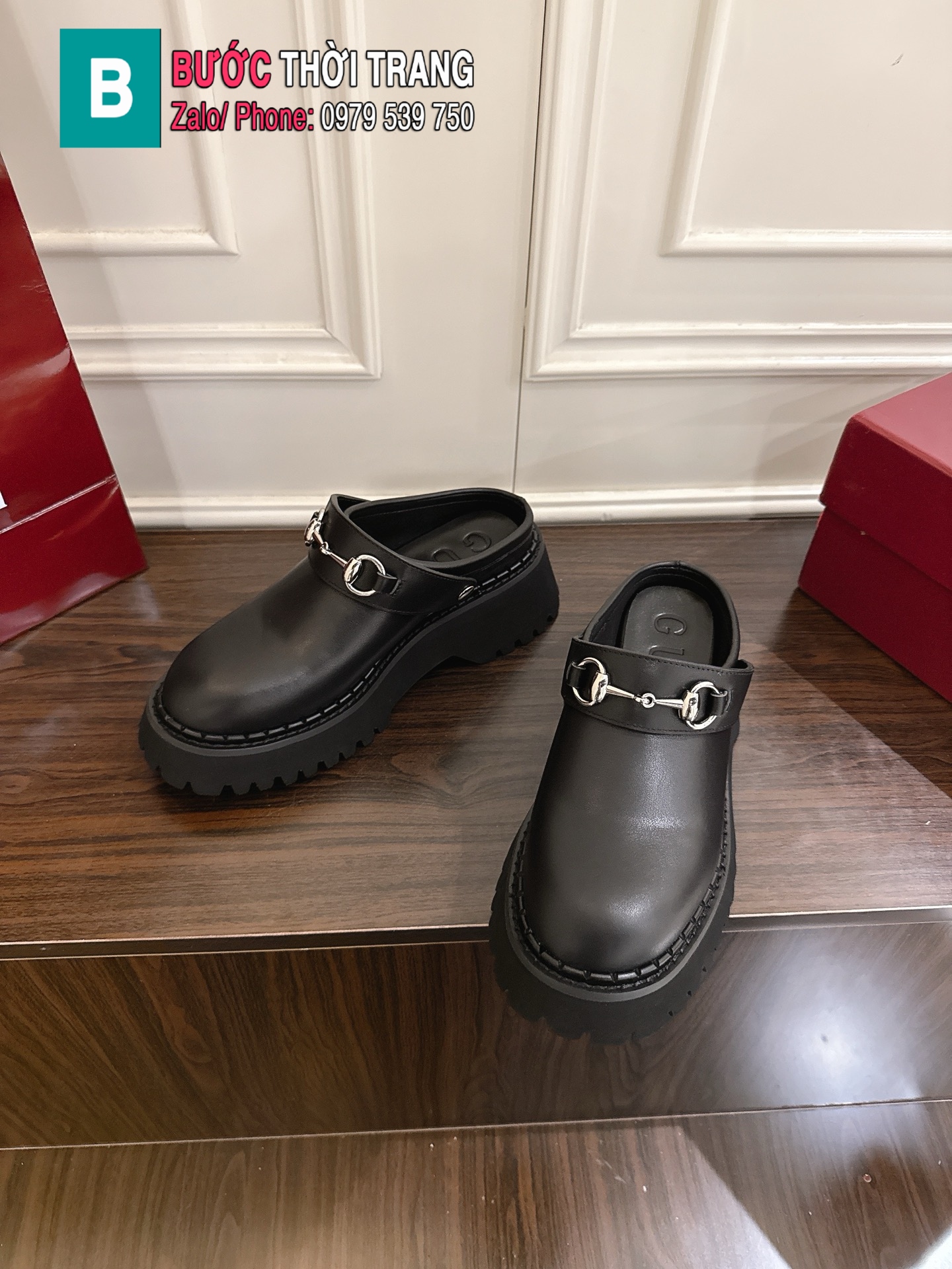 Sục GUCCI quai ngang da bò màu đen cao cấp đế cao su đàn hồi vượt trội