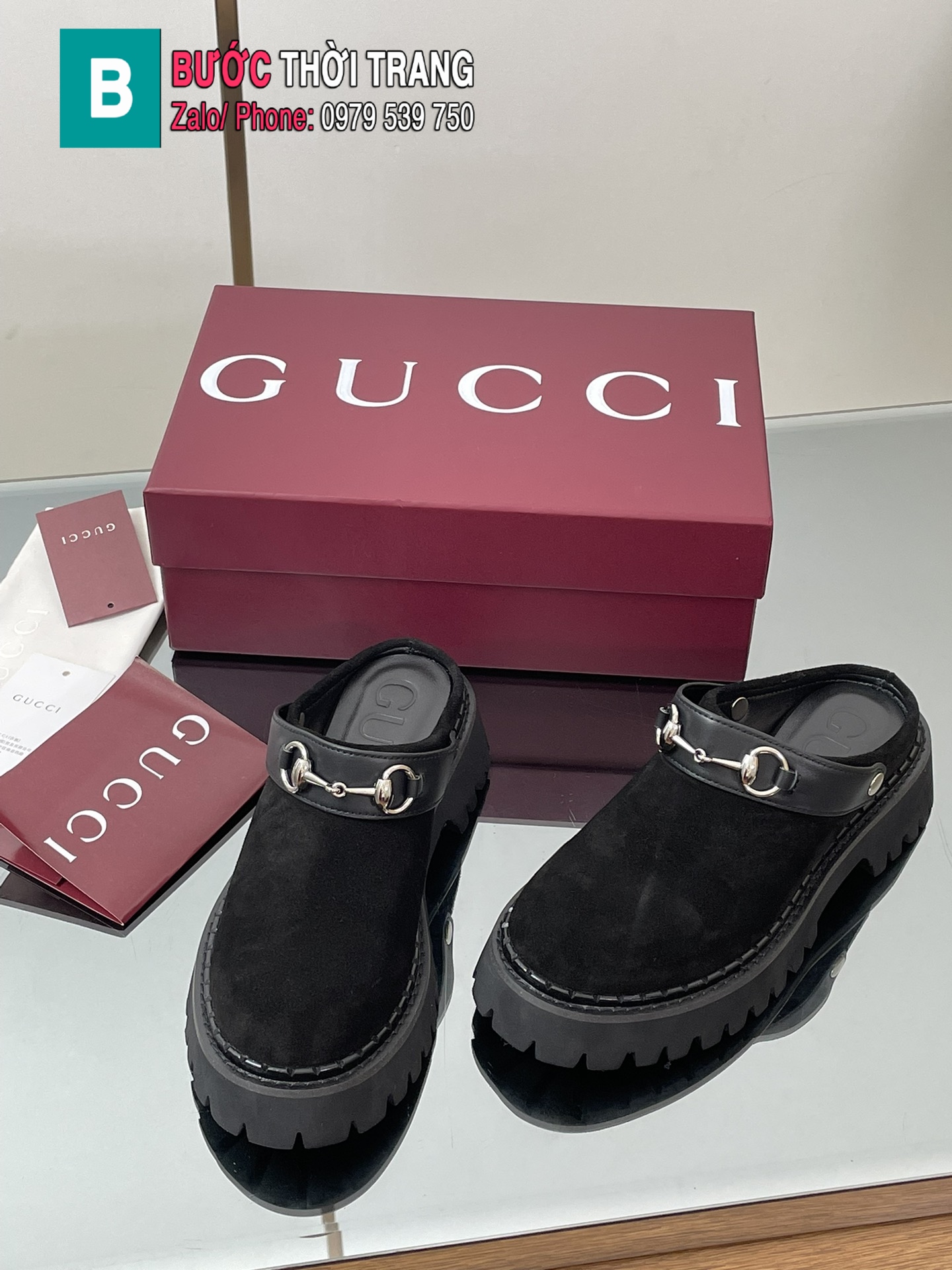 Phom dáng nửa gót tiện lợi, đế rãnh bền bỉ và kiểu dáng unisex giúp đôi giày trở thành lựa chọn hoàn hảo cho cả nam và nữ, tôn lên vẻ thanh lịch, tự tin và phóng khoáng đặc trưng của Gucci.