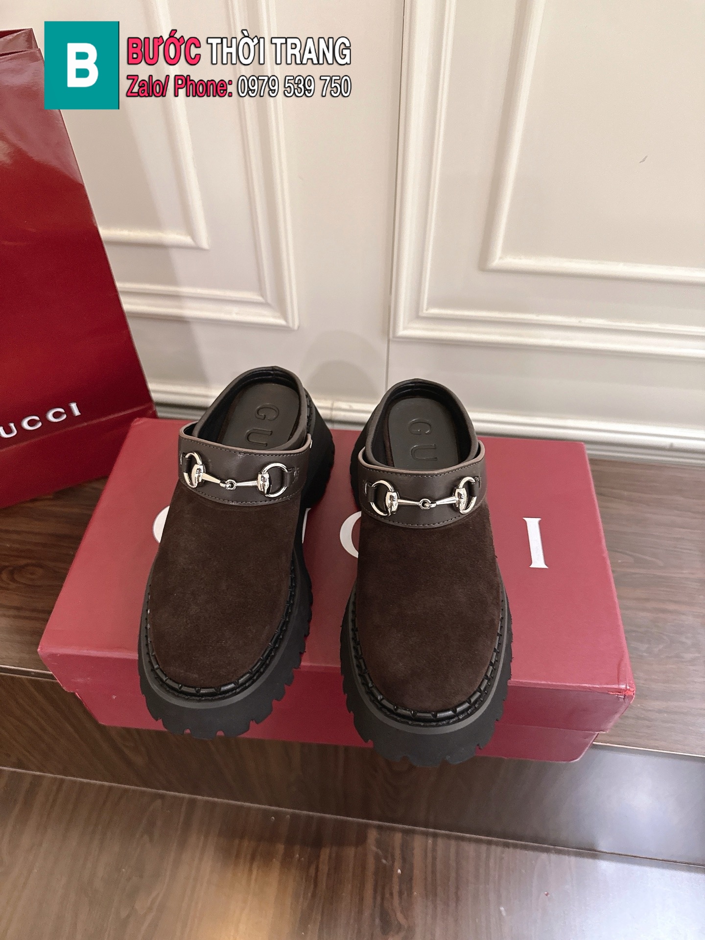 Sục GUCCI quai ngang da lộn màu nâu socola đậm cao cấp đế cao su đàn hồi vượt trội