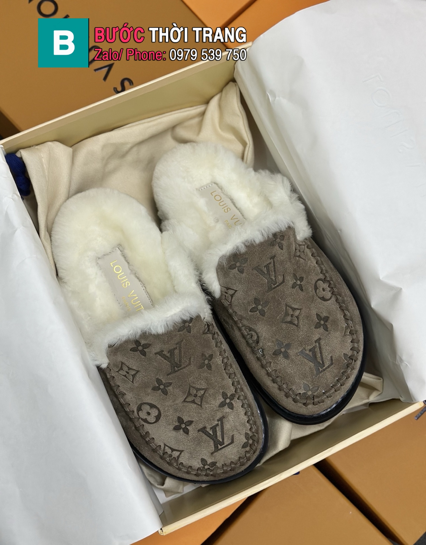 Sục LV lông cừu cao cấp màu xám nâu mềm êm ấm áp