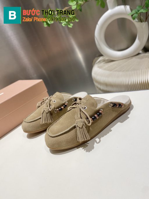 Sục Miu Miu màu be cao cấp da lộn ấm áp phong cách cổ điển mang nét hiện đại