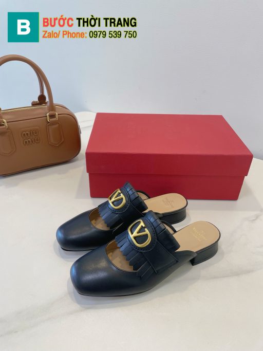Sục nữ Valentino cao cấp màu đen chất liệu da bò bền đẹp logo đính sang trọng