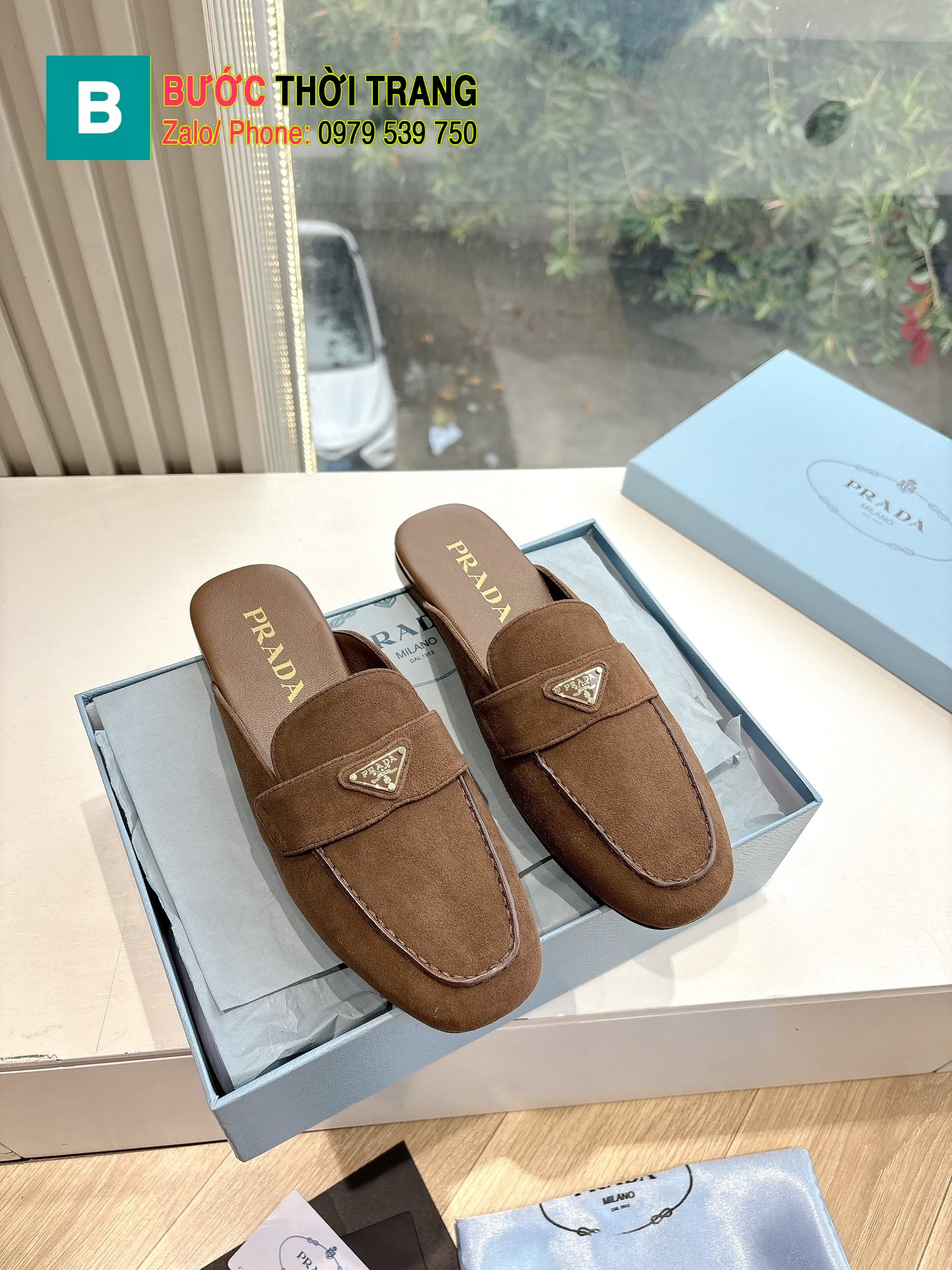 Sục PRADA màu nâu đậm cao cấp được thiết kế mang phong cách retro thời thượng sang trọng