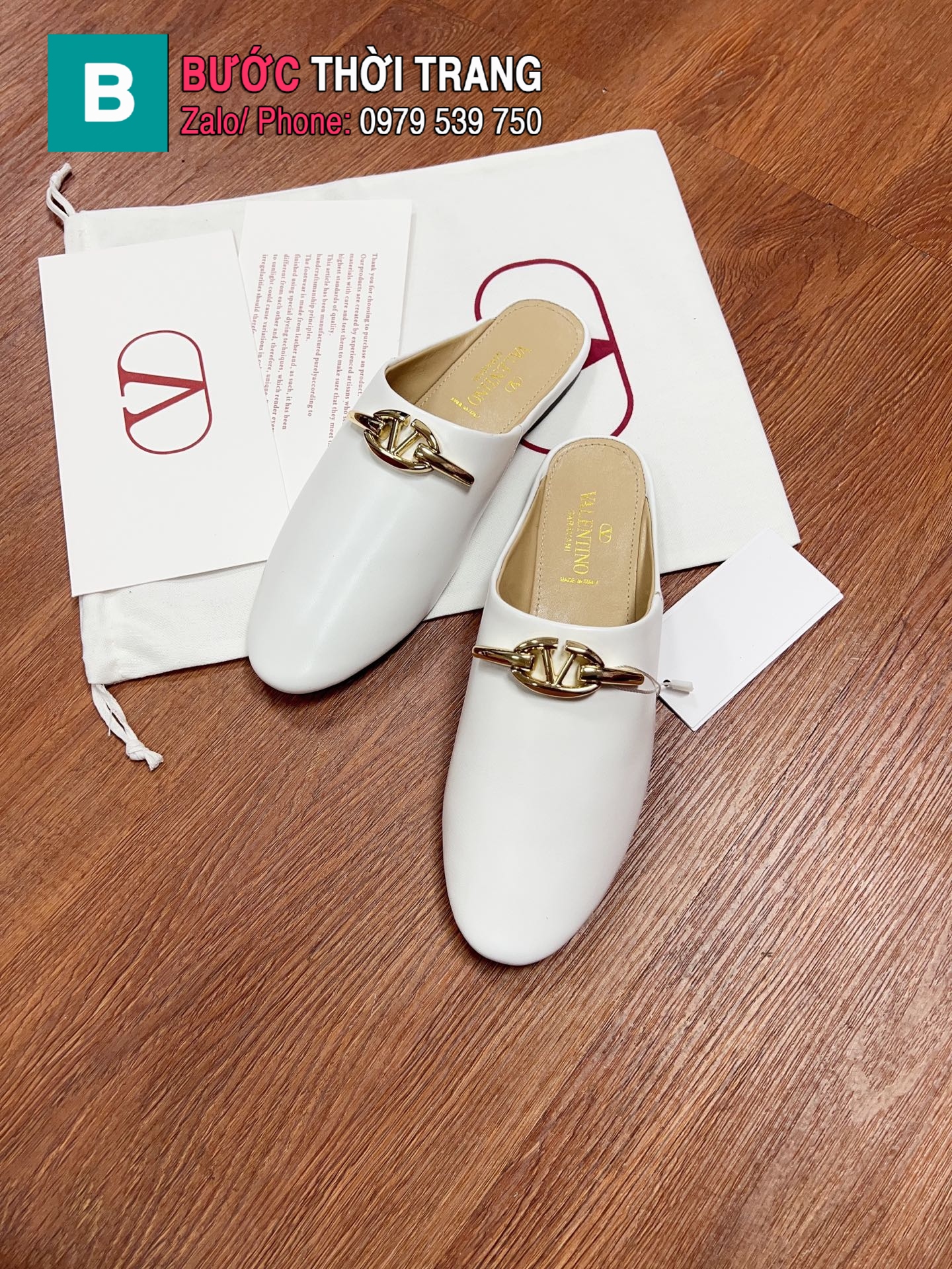 Sục VALENTINO cao cấp màu trắng da bò mềm mại phong cách basic