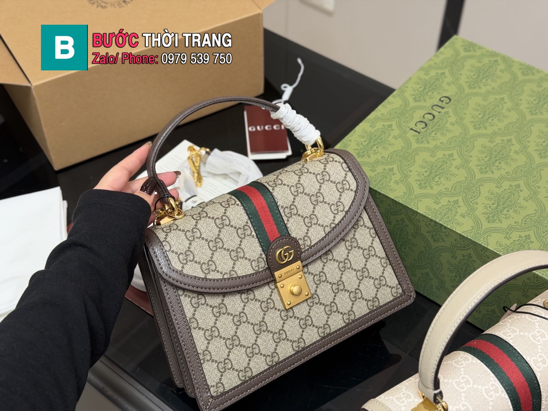 Túi đeo chéo GG Ophidia màu nâu size 25×18 cm da bê cao cấp