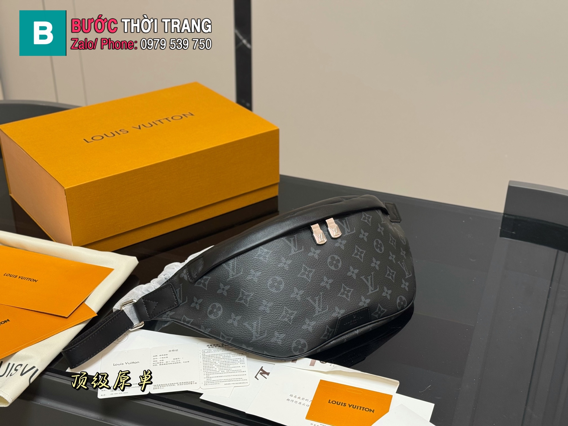 Túi đeo hông LV Discovery Bumbag chất monogram màu đen