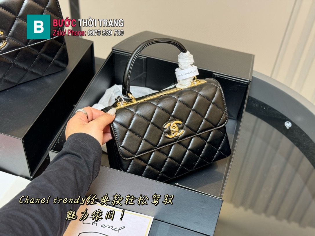 Túi xách CN trendy cc màu đen tag vàng size 20cm và 25 cm ô trám da mềm