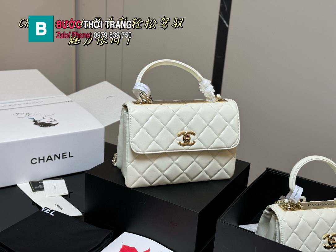 Túi xách CN trendy cc màu trắng tag vàng size 20cm và 25 cm ô trám da mềm