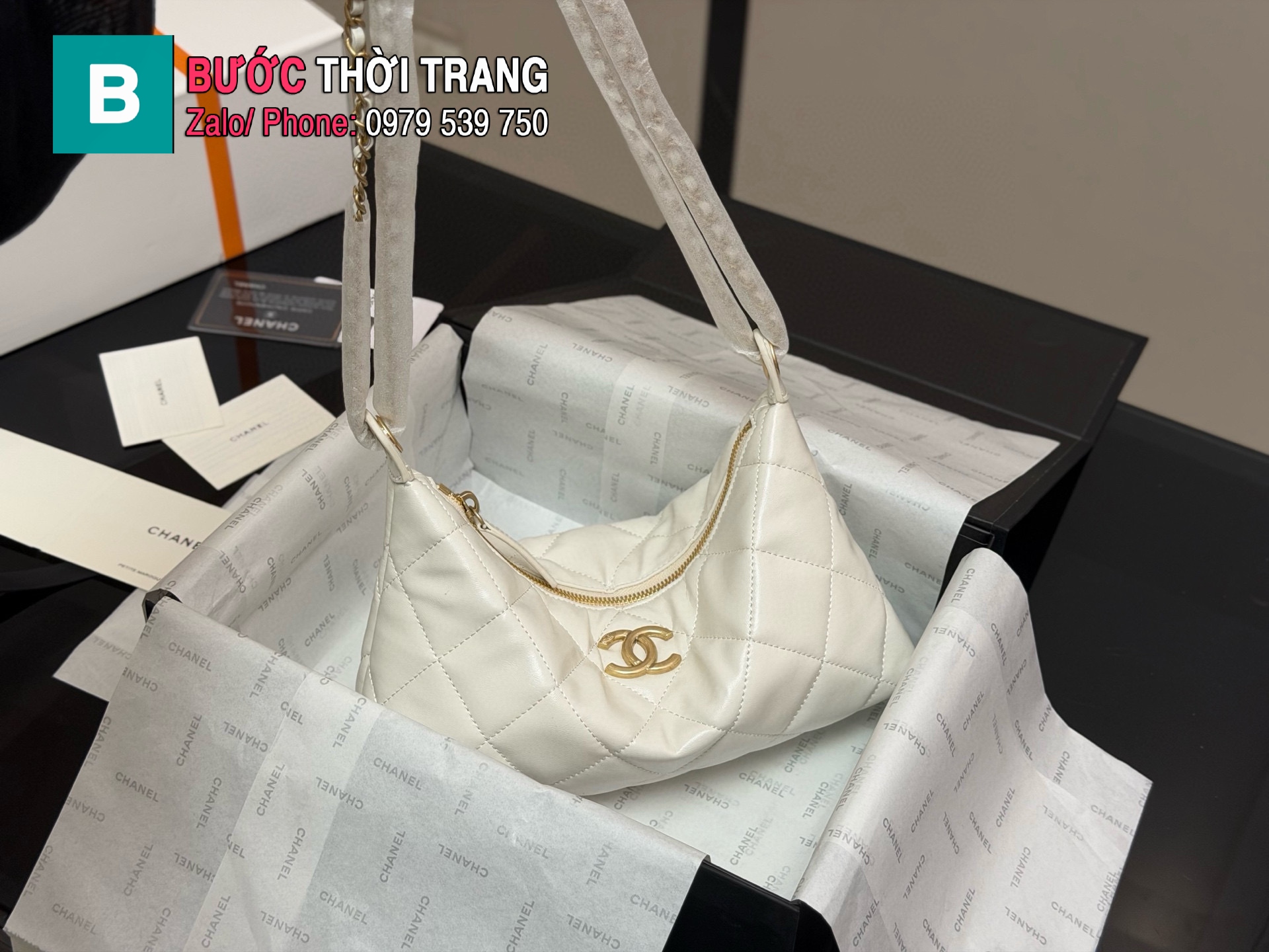 Túi xách CN25S Gold Coin Hobo da mềm mại màu trắng size 25x14cm
