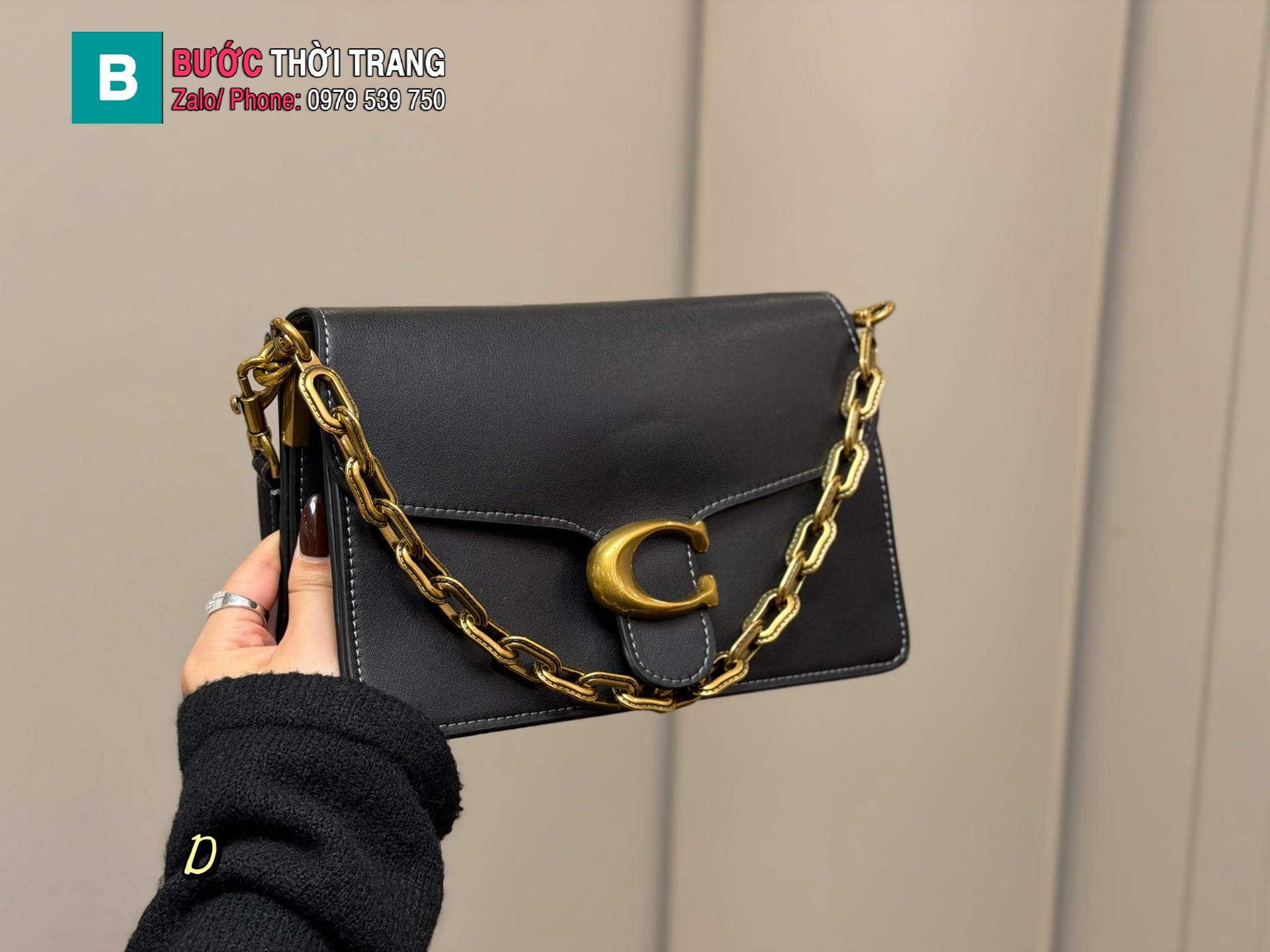 Túi xách Coach Chain tabby màu đen da bò mềm mịn size 25×16 cm khóa bạc và khóa vàng nổi bật