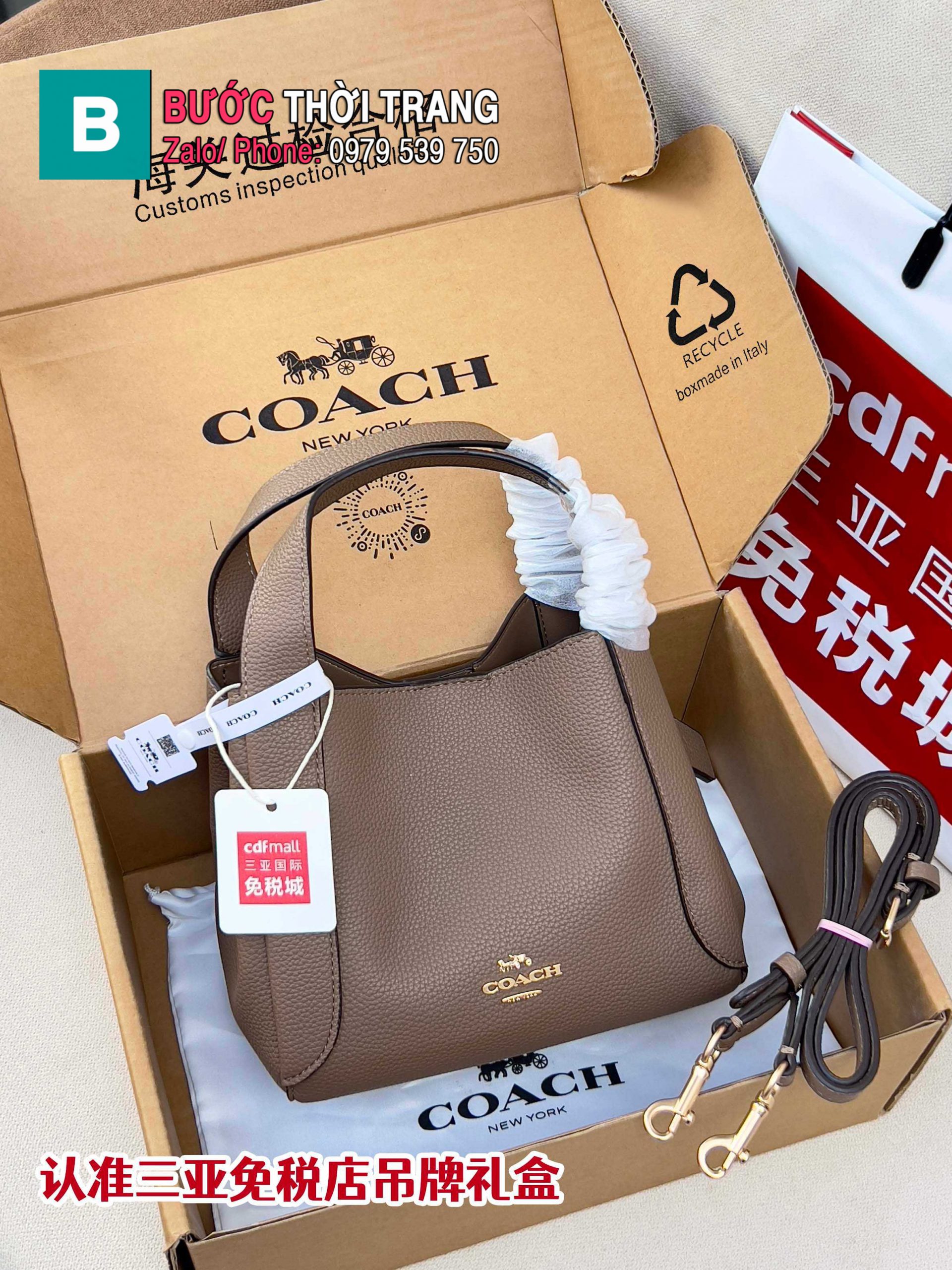 Túi xách COACH Hadley hobo21 mẫu túi giỏ siêu tiện dụng size 21 cm màu ghi nâu