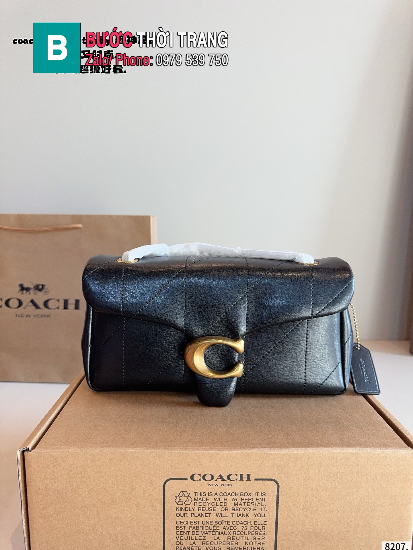 Túi xách COACH Soft Tabby màu đen tag vàng da bò mềm mịn size 25 cm