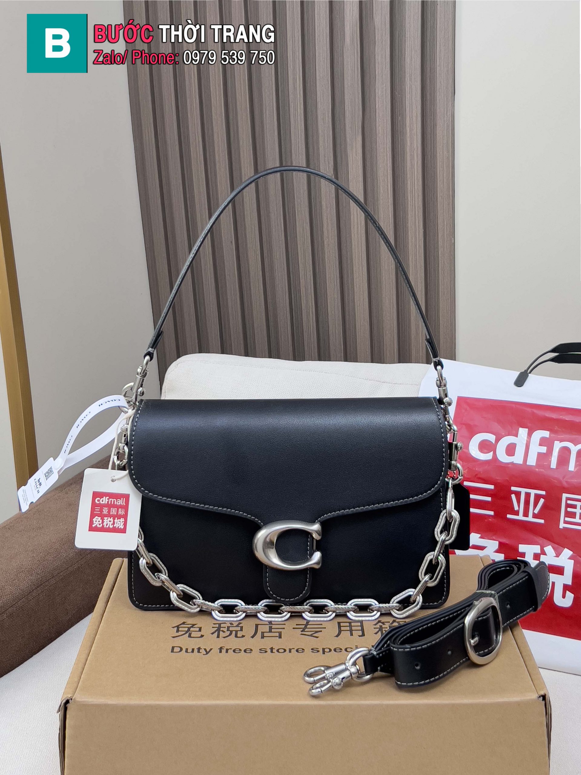 Túi xách COACH tabby màu đen tag bạc da bò size 26x16x6.5cm 2 dây đeo