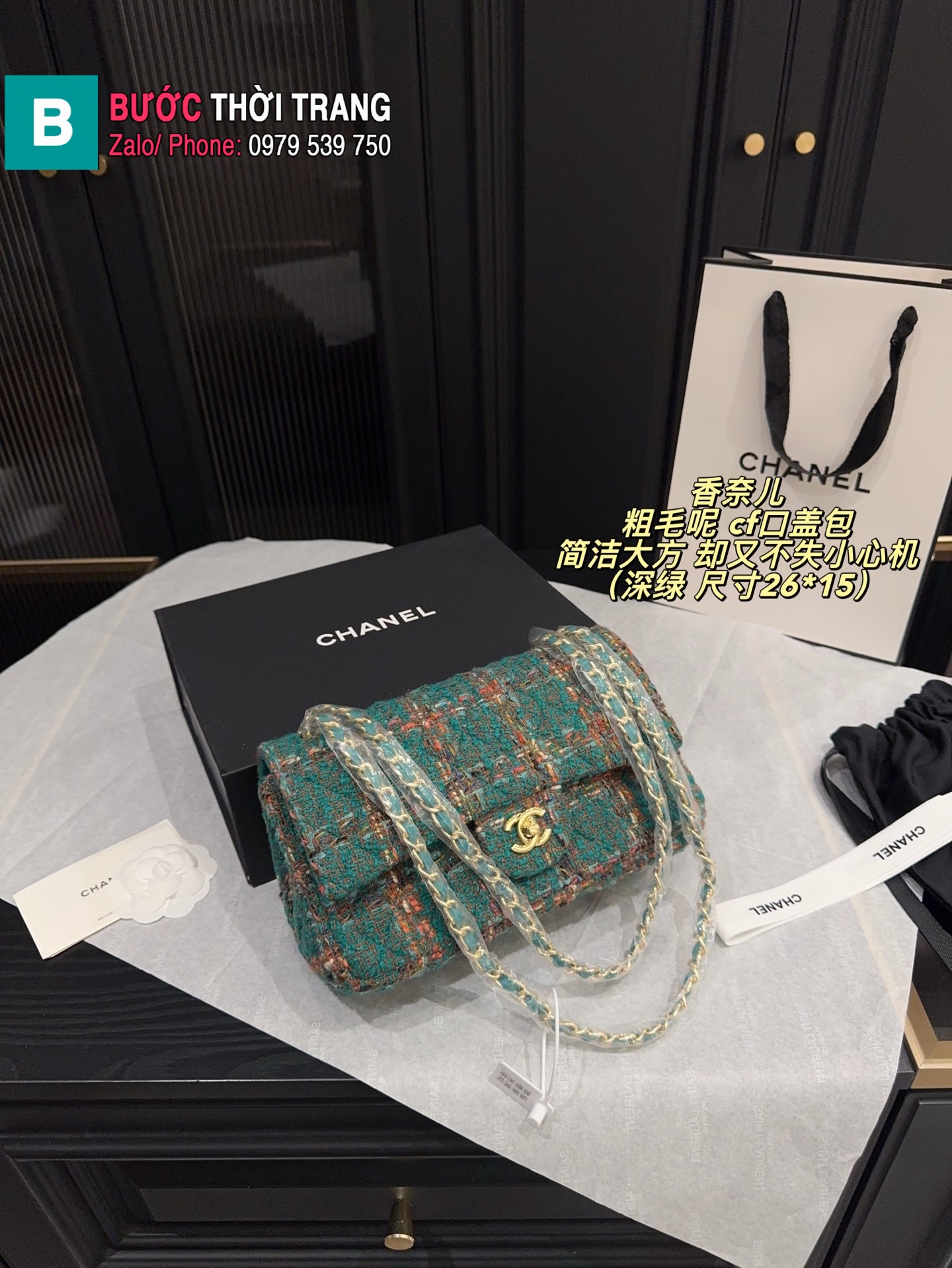 Túi xách đeo chéo CN cf nhiều màu size 26×15 cm chất liệu vải dạ tweed