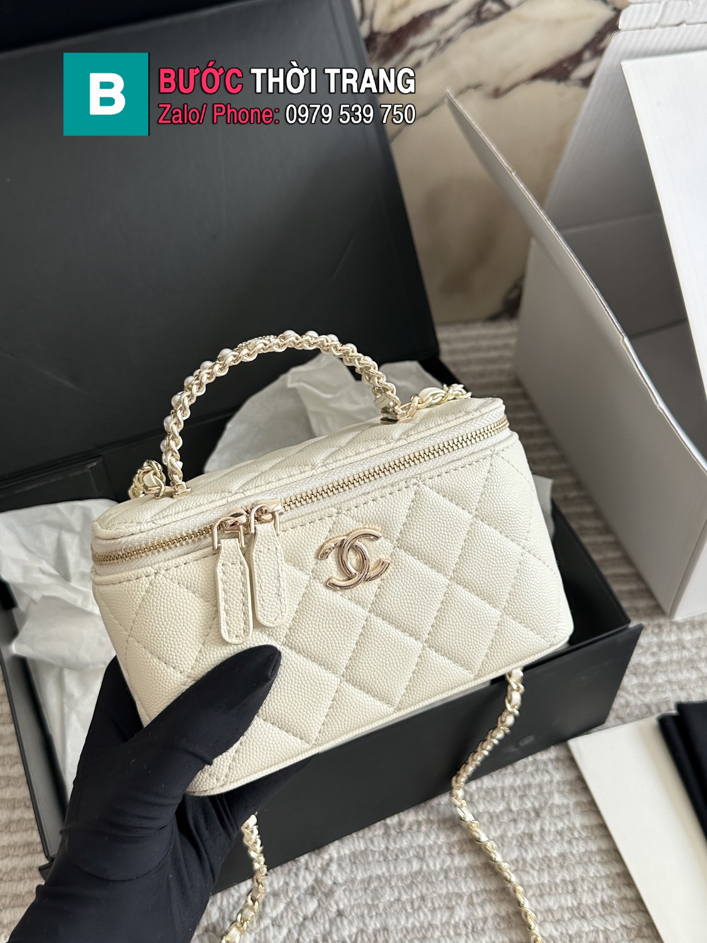 Túi xách đeo chéo CN màu trắng ngà size 19cm da hạt bền bỉ dáng hộp