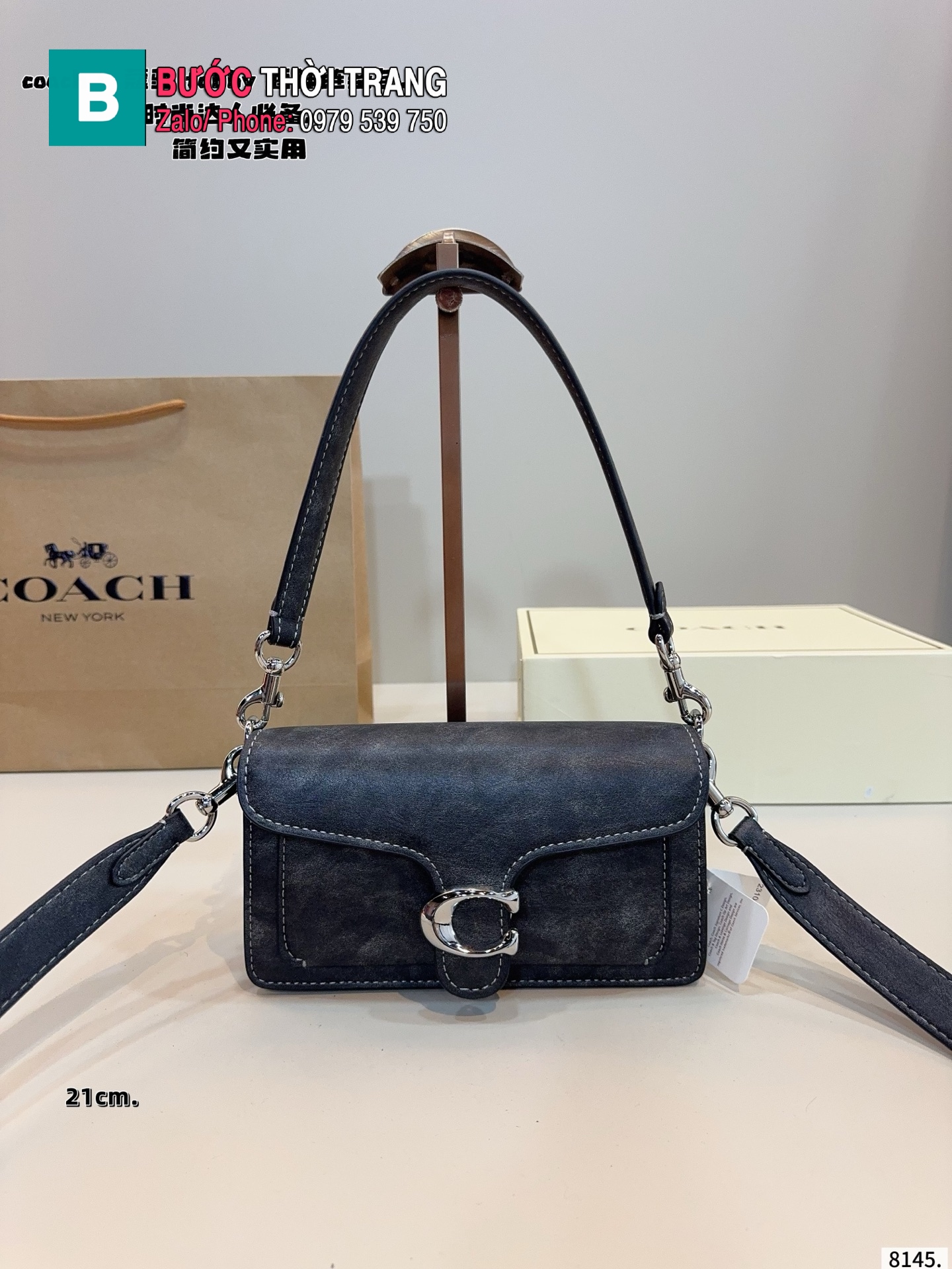 Túi xách đeo chéo Coach tabby màu đen nhám size 21 cm và 26 cm