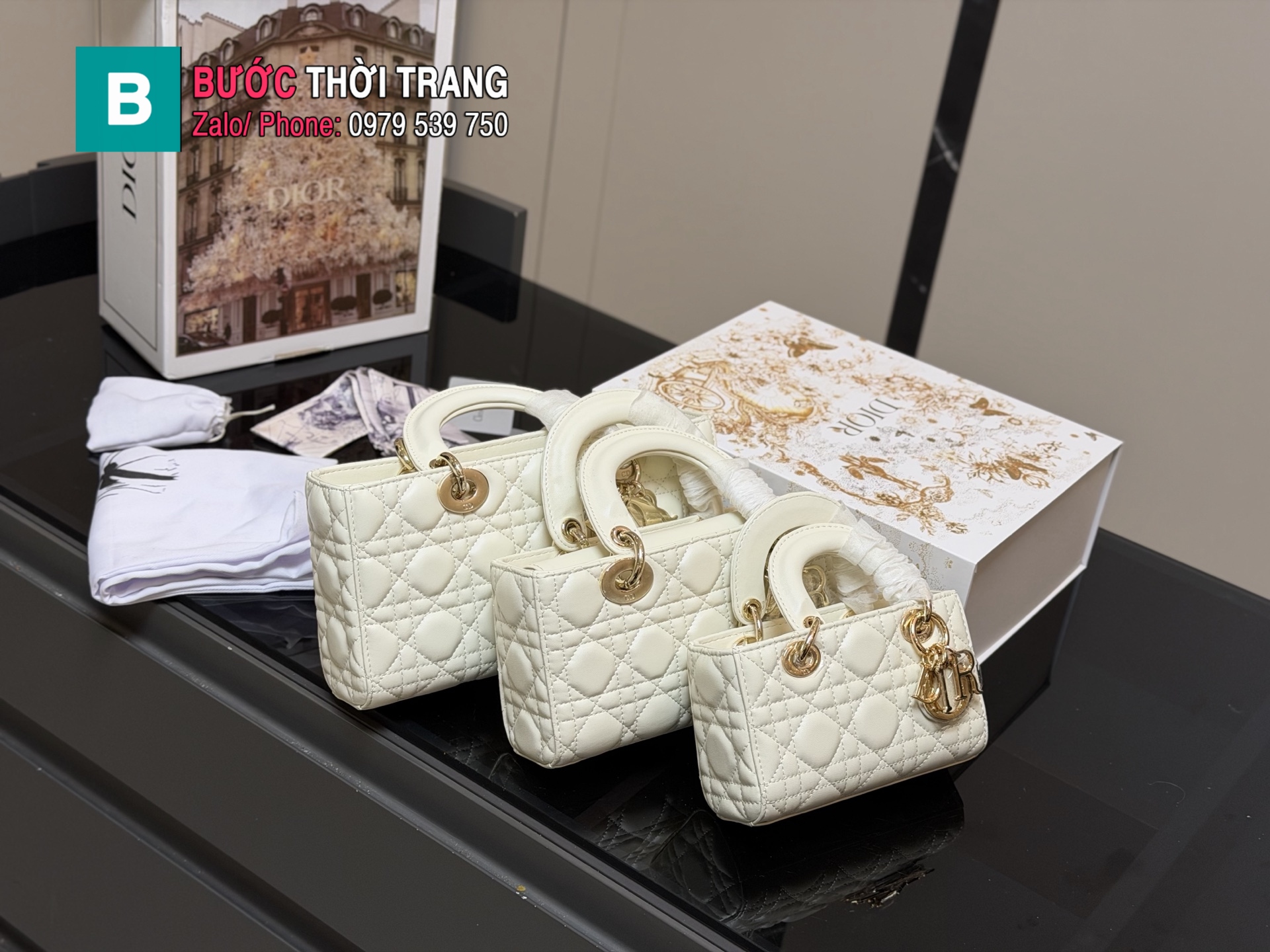 Túi xách đeo chéo Dior lady size 17,20,24 cm nhiều màu ô trám da bê mềm