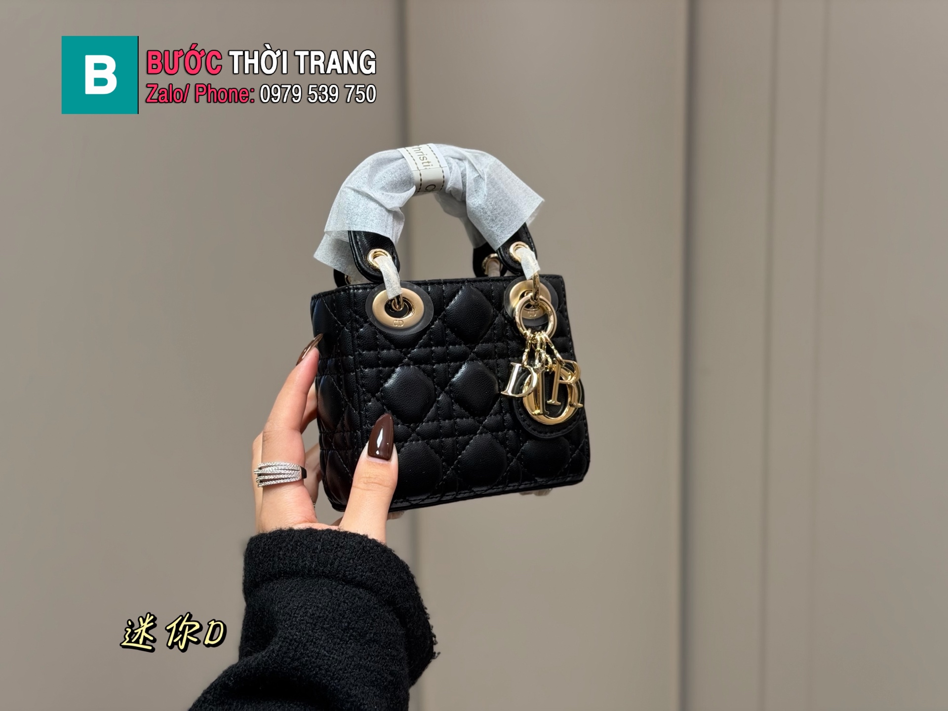 Túi xách đeo chéo Dior mini màu đen size 13×11 cm nhỏ xinh dây đeo vàng sáng nổi bật