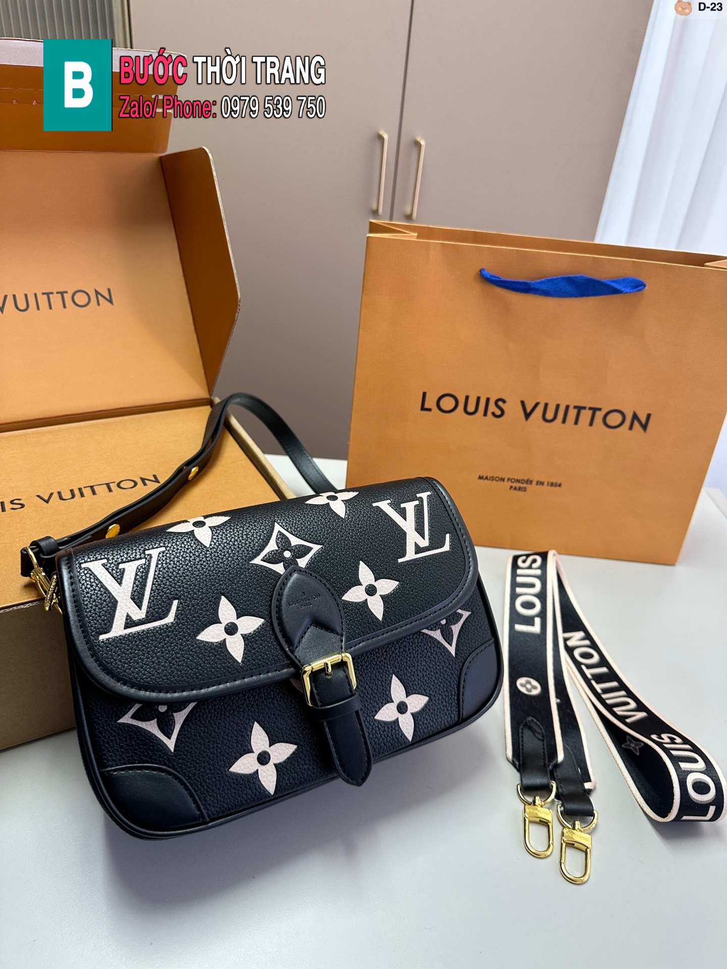 Túi xách đeo chéo LV màu đen họa tiết chữ trắng monogram size 26 cm