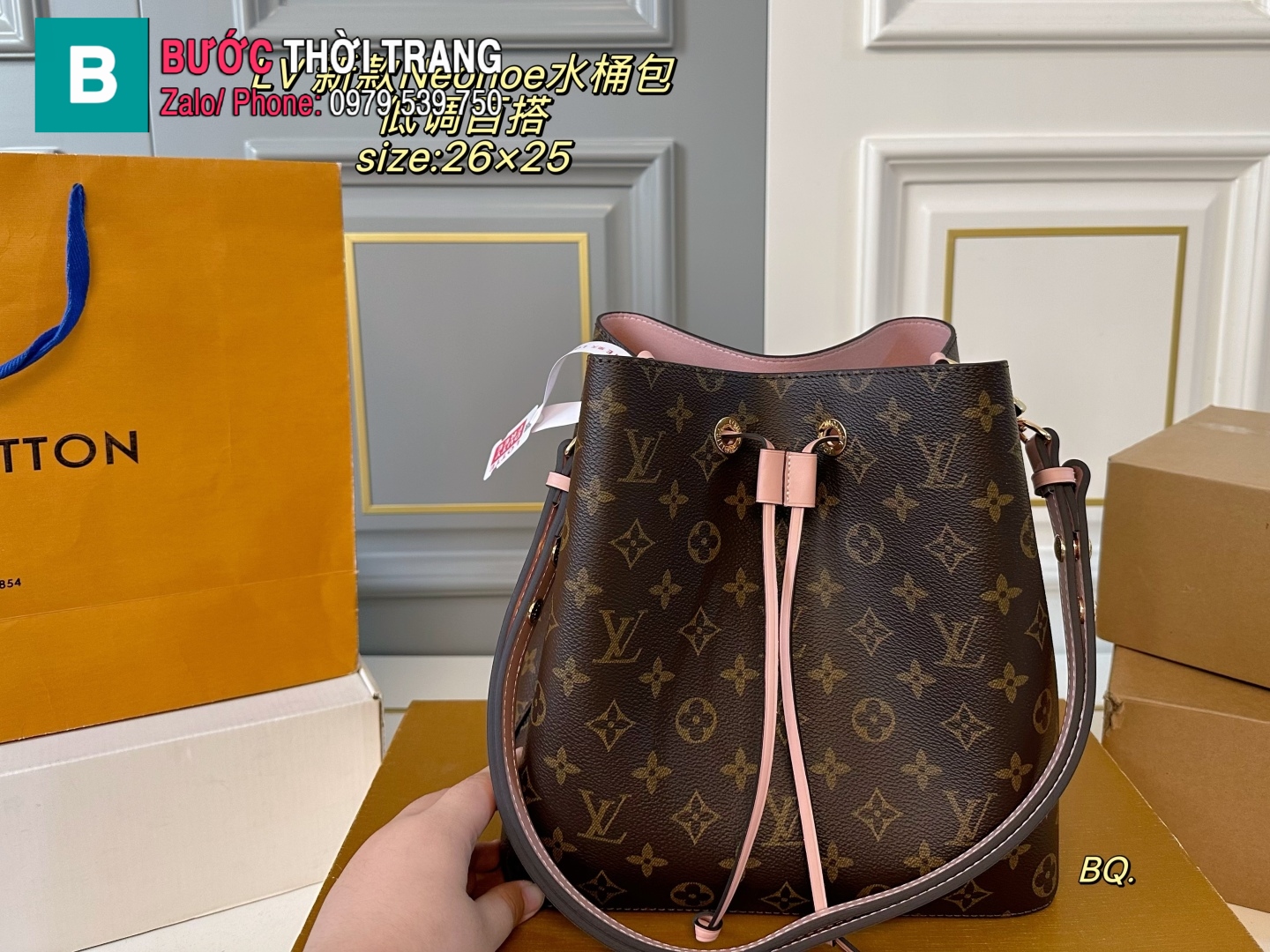 Túi xách đeo chéo LV neo noe màu nâu họa tiết monogram size 26 cm quai hồng nữ tính