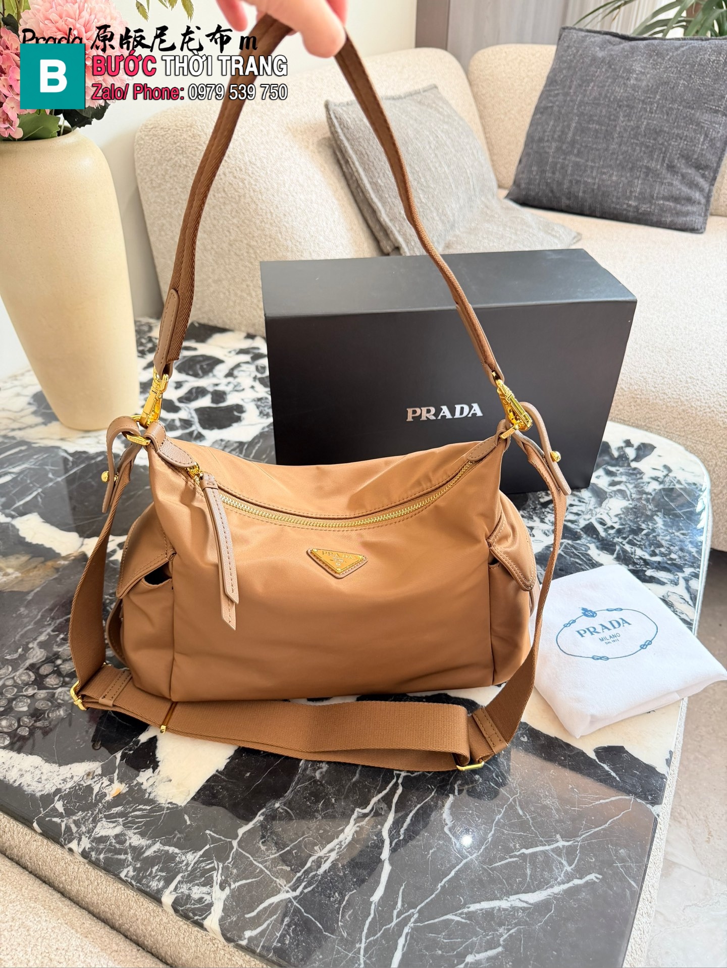 Túi xách đeo chéo PRADA màu nâu sang trọng size 30 cm ngăn lớn rộng rãi phong cách năng động