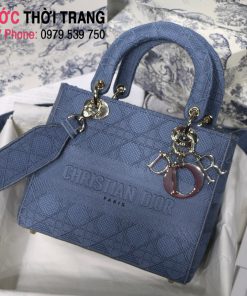 Túi xách Dior Lady D-Lite siêu cấp vải casvan màu xanh nhạt size 24cm