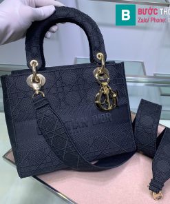 Túi xách Dior Lady vải siêu cấp màu đen size 24cm
