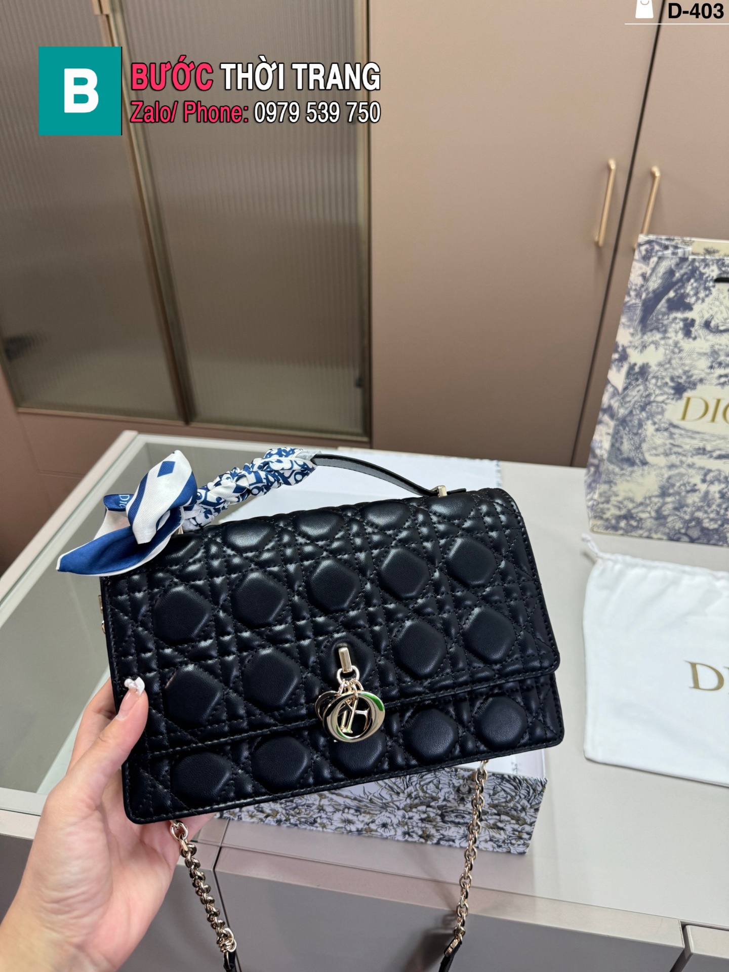 Túi xách DIOR Miss màu đen ô trám tròn size 24 cm kèm khăn
