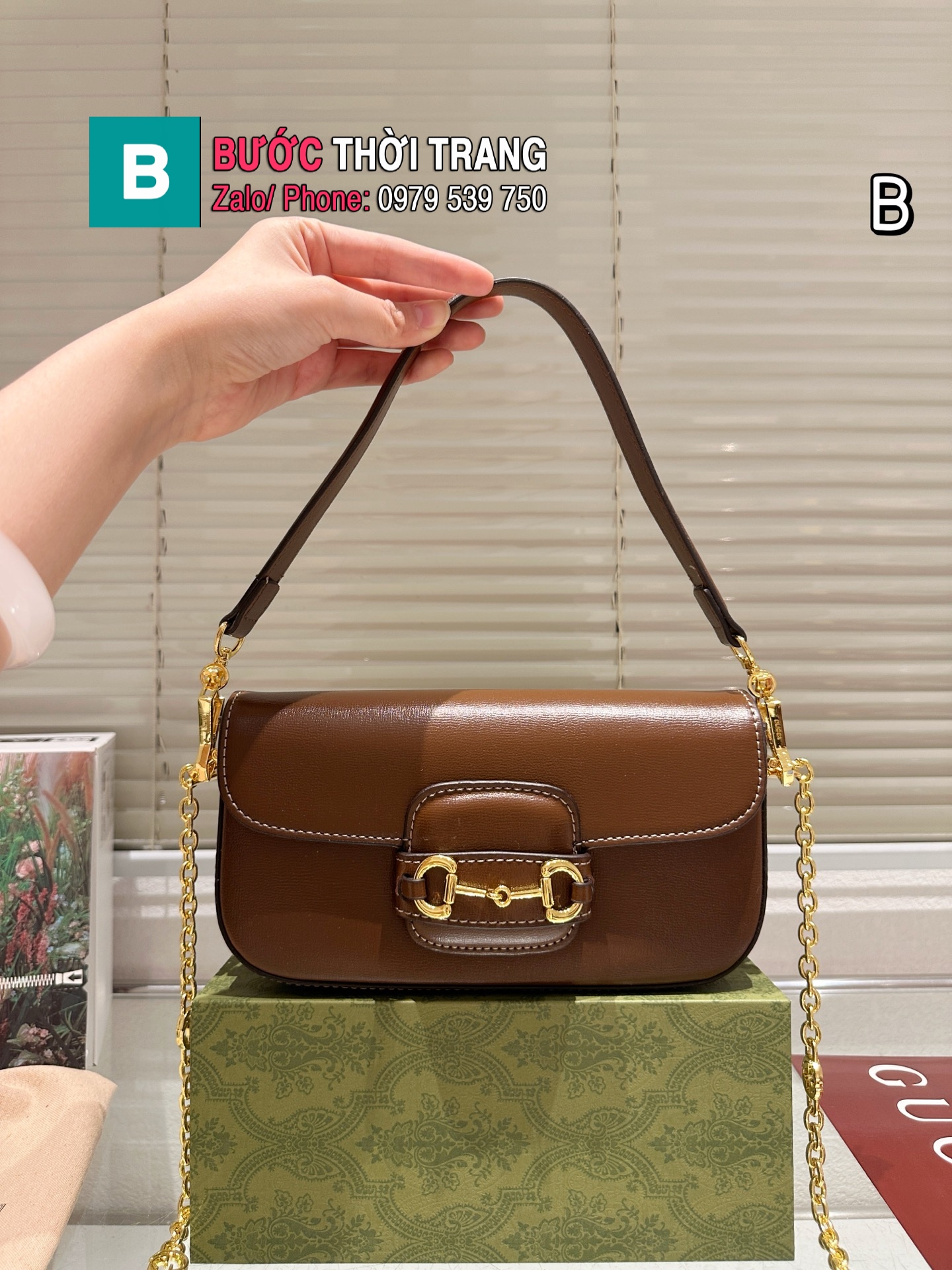 Túi xách Gucci 1955, phong cách cổ điển da trơn mịn màu nâu tag vàng size 21 cm