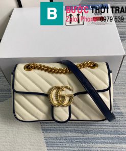 Túi xách Gucci Marmont matelasé mini bag siêu cấp là một chiếc túi xách mini có hình dạng và cấu trúc mềm mại. nắp đóng quá khổ, phần cứng GG kim loại. Dây đeo chéo hoặc khoác vai dạng chuỗi. Chất liệu vải casvan viền da cao cấp bền bỉ, với họa tiết GG của thương hiệu ở khắp túi. Lớp lót sợi nhỏ giống da lộn, một ngăn chính rộng bên trong và một ngăn nhỏ rất tiên dụng