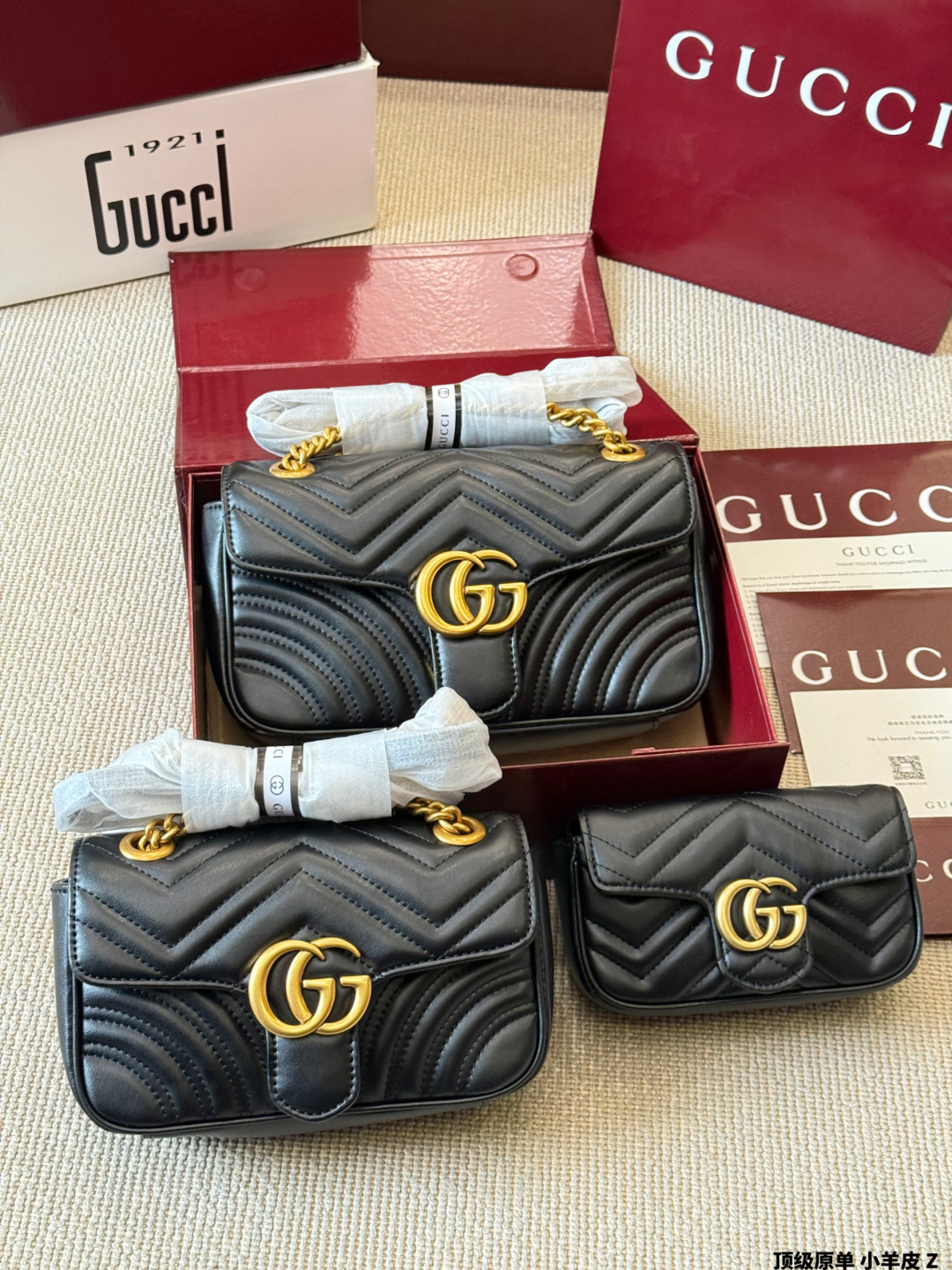 Túi xách Gucci Marmont màu đen da mềm mại có 3 kích thước 16cm, 22cm và 26cm