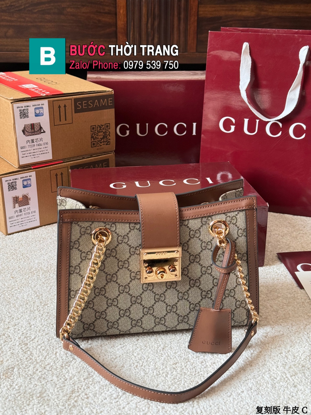 Túi xách Gucci padlock màu nâu size 25×18 cm