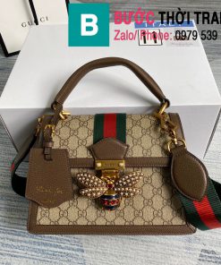 Túi xách Gucci Queen Margaret GG siêu cấp là một chiếc túi xách nổi bạt được bạn trẻ yêu thích nhất. Vơi thiết kế phong cách cổ điển tôn nên sự sang trọng trẻ trung mang đến sức hút cho các bạn trẻ. Được làm từ hai chất liệu chính, vải casvan trần, xung quanh được viền da thật nổi bật cao cấp bền đẹp. Điểm dễ nhận biết là 3 đường sọc và khóa hình con ong khác lạ và rất đặc biệt của túi. Túi fom chuẩn, đường may tỉ mỉ chắc chắn, phần cứng kim loại. Quai xách tay và dây đeo chéo hoặc khoác vai dúp cho các bạn thể hiên những phong cách riêng của mình. Trong túi có ba ngăn một ngăn lớn, một ngăn trung và một ngăn nhỏ rất tiên dụng