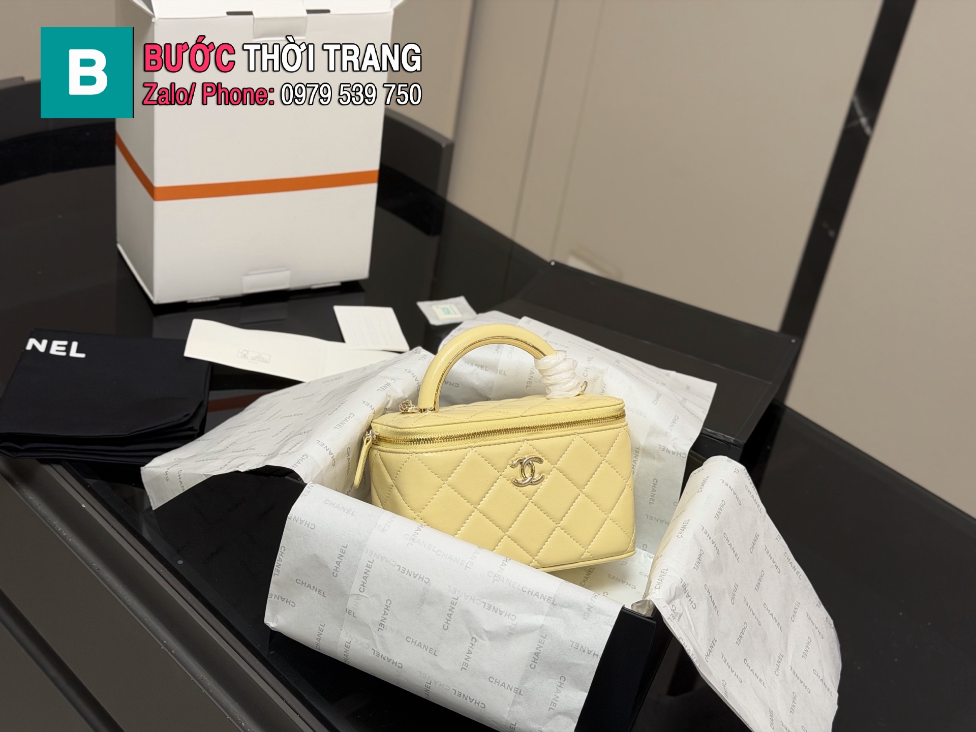 Chiếc hộp trang điểm cầm tay CN với kích thước 17 × 11 cm là món phụ kiện nhỏ gọn nhưng đầy tinh tế. Thiết kế nâng cấp mang lại cảm giác chắc chắn và sang trọng hơn, vừa tiện lợi khi mở ra để dặm lại lớp trang điểm, vừa trở thành điểm nhấn thời thượng khi đóng lại và cầm trên tay. Dáng hộp mini hiện đại, đậm chất Chanel, giúp bạn tự tin tỏa sáng trong mọi khoảnh khắc ra phố.