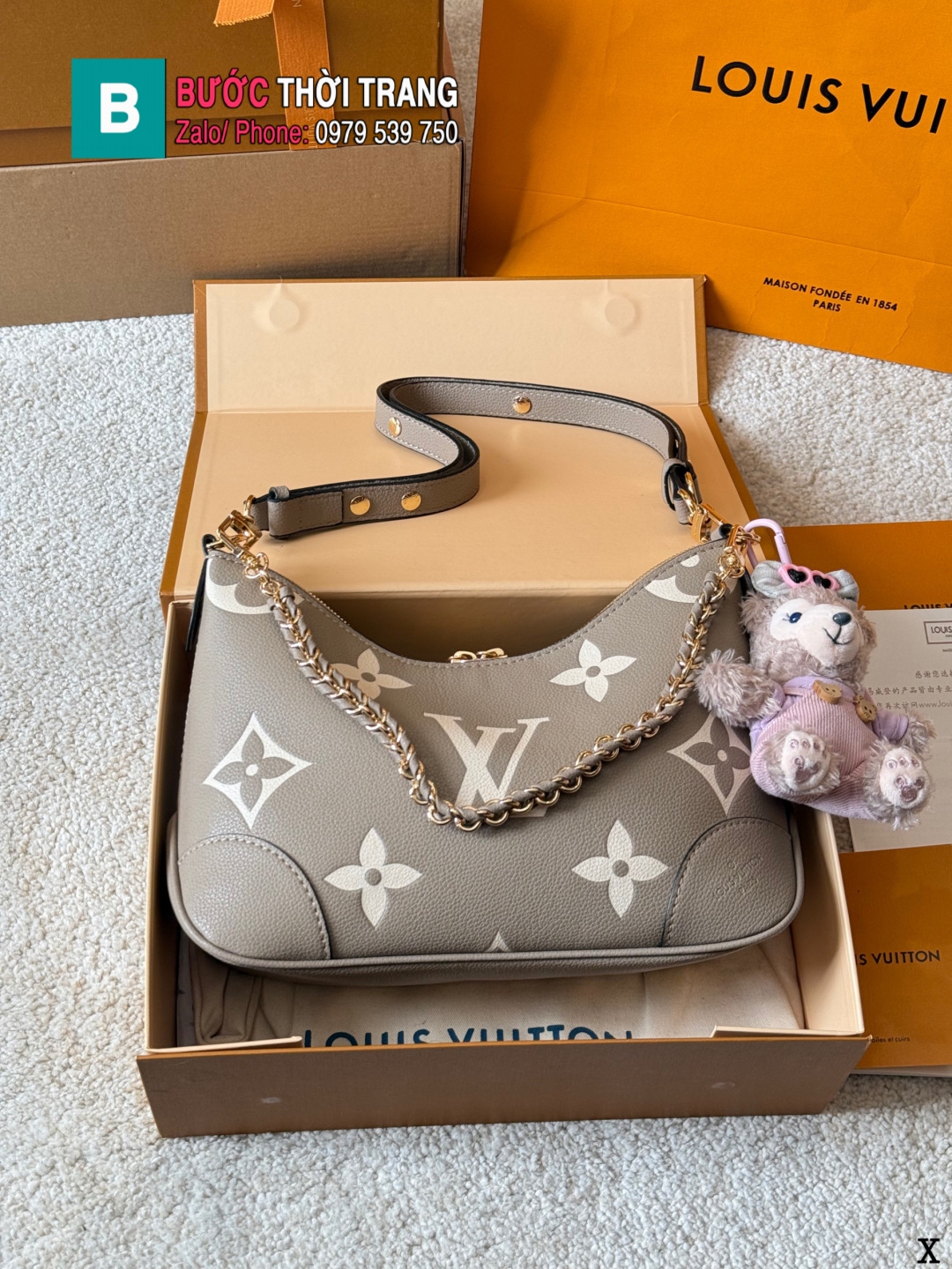 Túi xách LV Boulogne màu ghi nâu size 27 cm kèm gấu bông xinh xắn