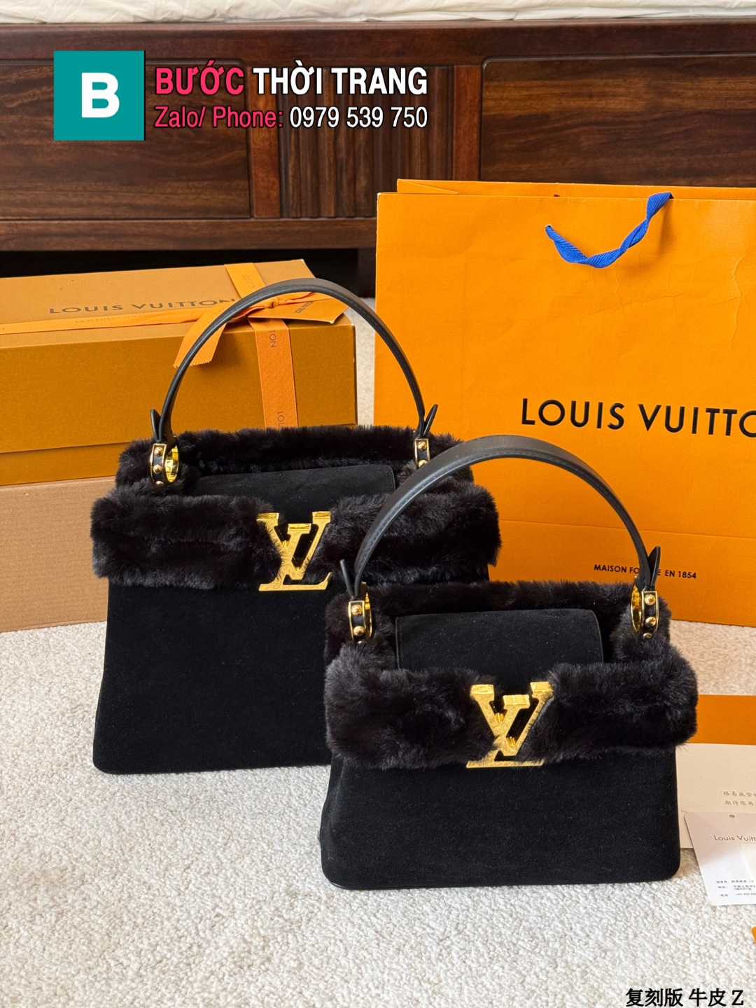 Làm từ da bò cao cấp, chế tác tinh xảo từng đường kim mũi chỉ, chiếc LV Capucines mang vẻ đẹp sang trọng, hiện đại mà vẫn giữ nét cổ điển đặc trưng của Louis Vuitton.