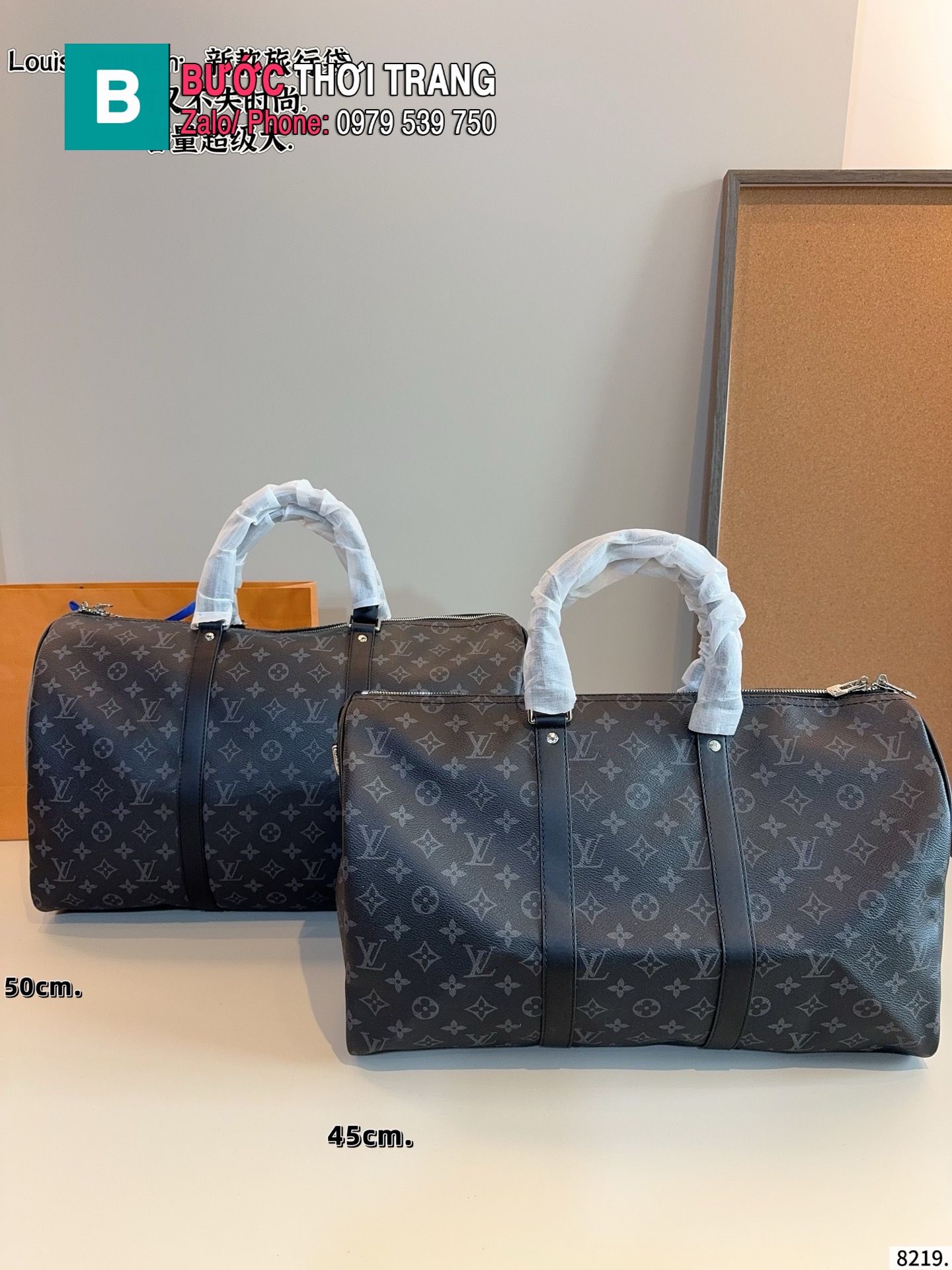 Túi xách LV keepall màu ghi đen size 45cm và 50 cm da mềm chuẩn form logo in nổi bật