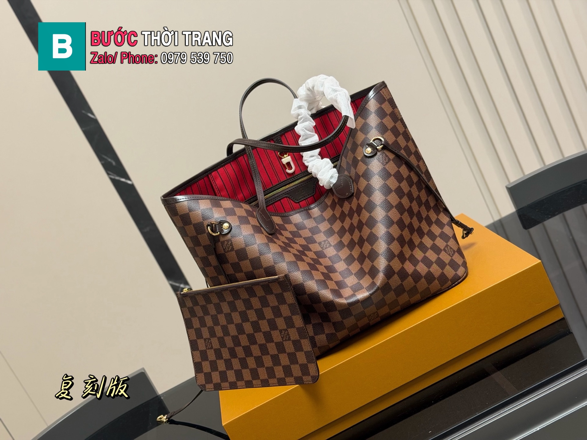 Túi xách LV neverfull màu nâu lót đỏ size 32×28 cm da mềm mịn
