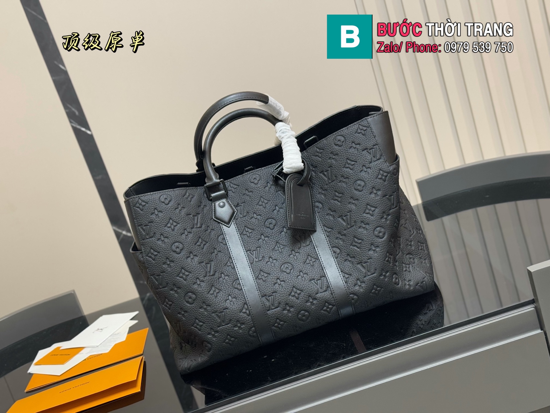 Túi xách nam cỡ lớn LV chất liệu da dập nổi hoa văn có thể đựng laptop