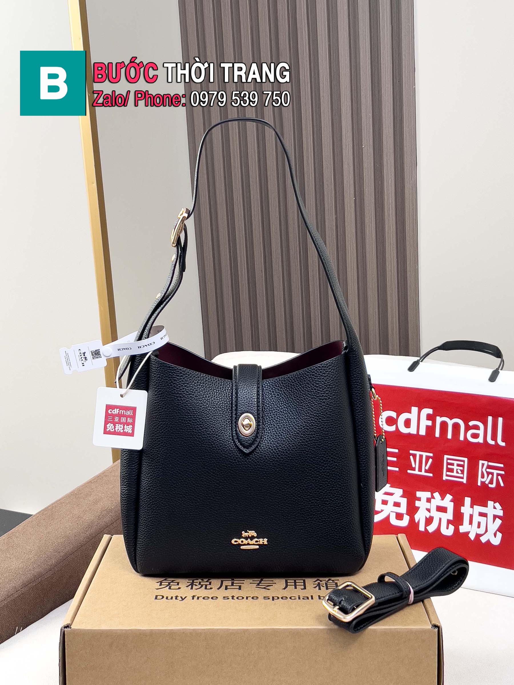 Túi xách nữ COACH Hadley Crossbody màu đen da bò mềm mại size 24x22x8 cm