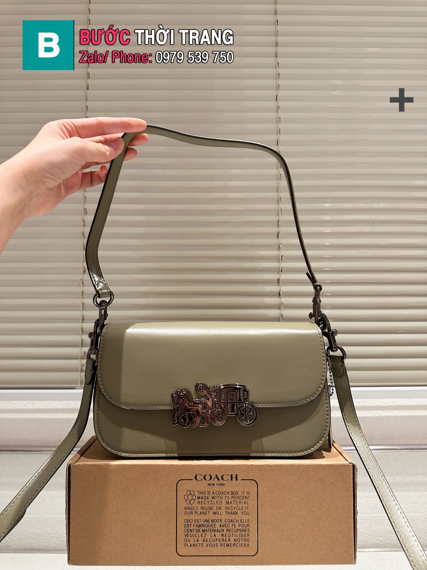 Túi xách nữ COACH Harper màu xanh rêu da lì mịn size 22×12 cm logo xe ngựa nổi bật